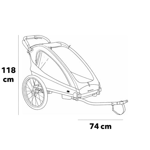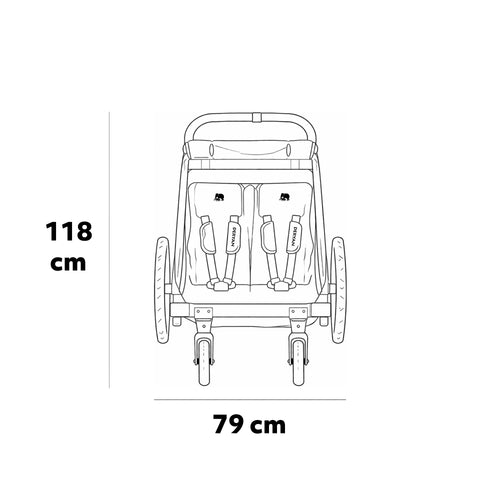 Det er en komfortabel og slitesterk vogn, designet for å transportere to barn eller ett barn og bagasje, med en totalvekt på opptil 45 kg.